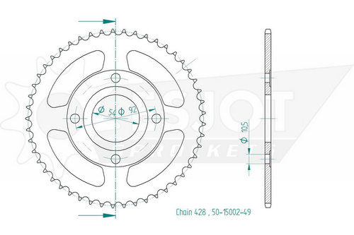 Kettenrad 49 Zähne Stahl 428er Teilung (1/2x5/16)