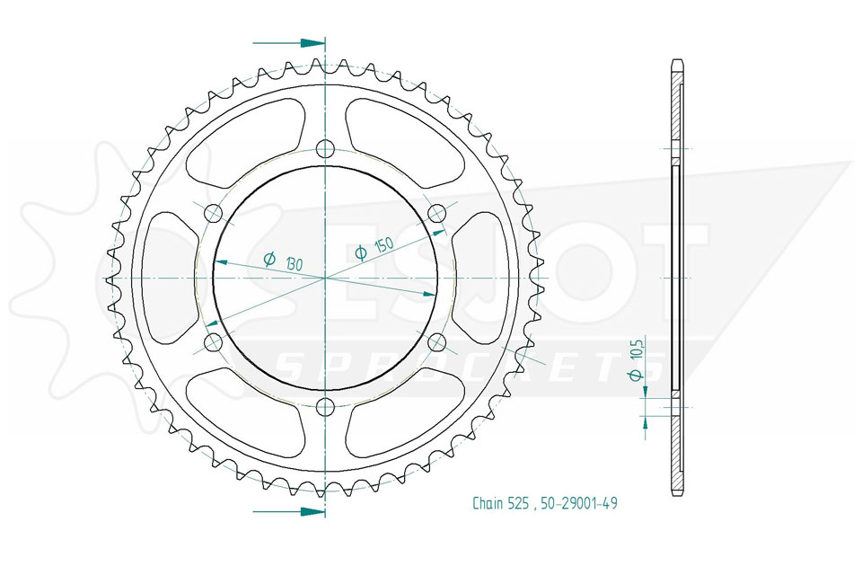 Kettenrad 49 Zähne Stahl 525er Teilung (5/8x5/16)