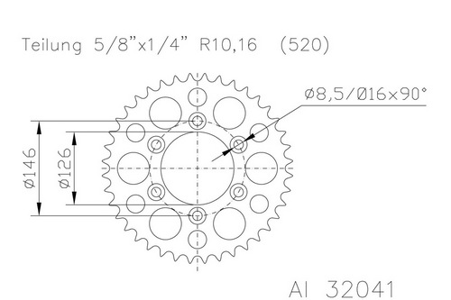 Kettenrad 49 Zähne Alu 520er Teilung (5/8x1/4)