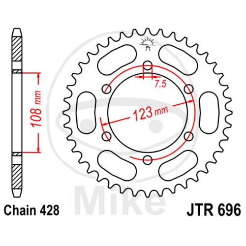 Kettenrad, 49Z, Teil.: 428, Innen Ø : 108, Lochkr.: 123