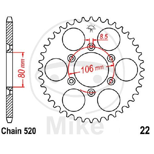 Kettenrad, 49Z, Teil.: 520, Innen Ø : 080, Lochkr.: 106