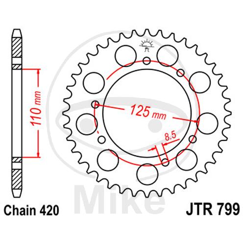 Kettenrad, 50Z, Teil.: 420, Innen Ø : 110, Lochkr.: 125
