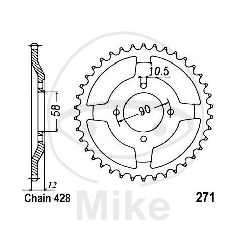 Kettenrad, 50Z, Teil.: 428, Innen Ø : 058, Lochkr.: 090