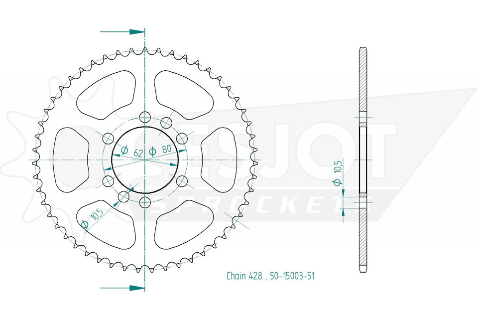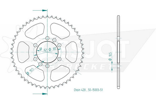 Kettenrad 51 Zähne Stahl 428er Teilung (1/2x5/16)