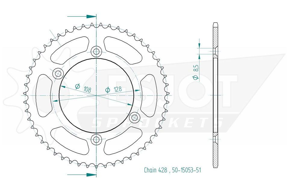 Kettenrad 51 Zähne Stahl 428er Teilung (1/2x5/16)