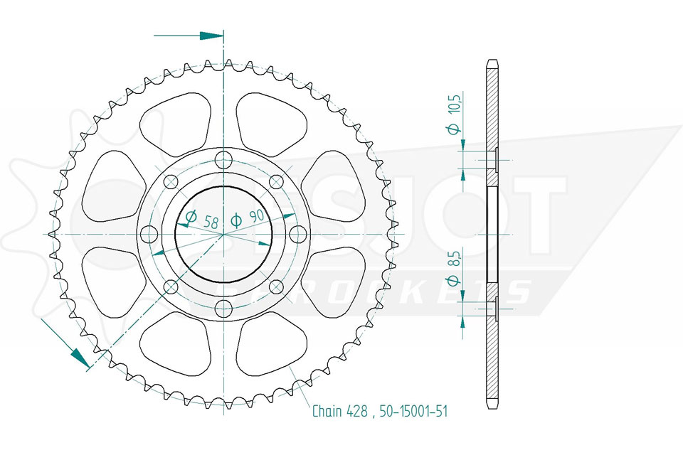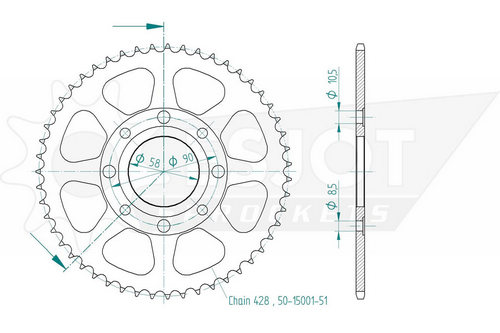 Kettenrad 51 Zähne Stahl 428er Teilung (1/2x5/16)