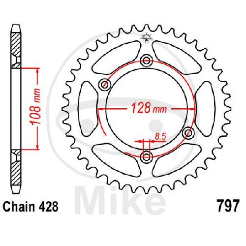 Kettenrad, 51Z, Teil.: 428, Innen Ø : 108, Lochkr.: 128