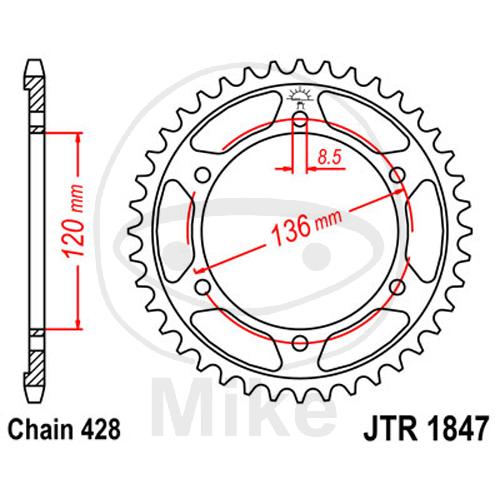 Kettenrad, 51Z, Teil.: 428, Innen Ø : 120, Lochkr.: 136