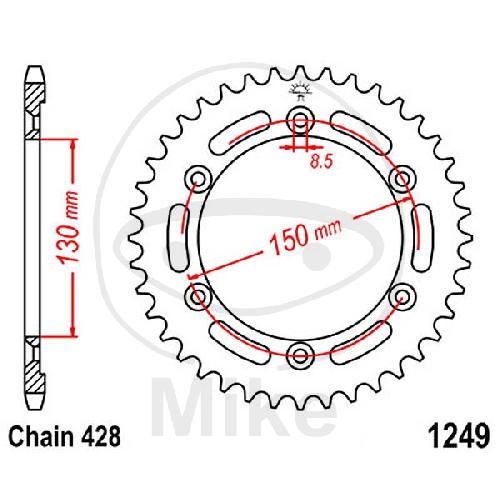 Kettenrad, 51Z, Teil.: 428, Innen Ø : 130, Lochkr.: 150