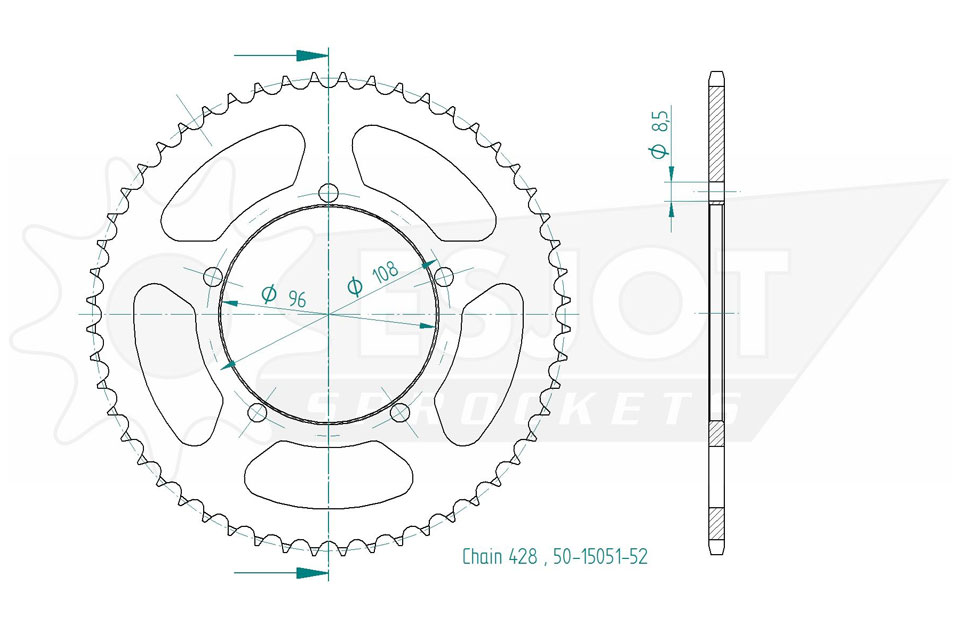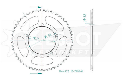 Kettenrad 52 Zähne Stahl 428er Teilung (1/2x5/16)