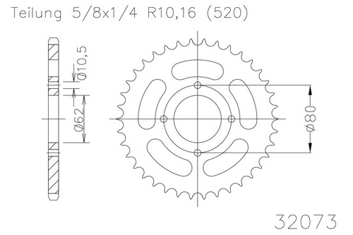 Kettenrad 53 Zähne Stahl 520er Teilung (5/8x1/4)