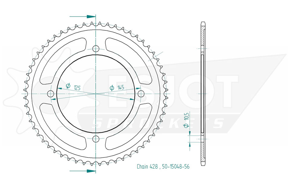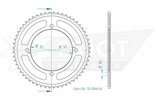Kettenrad 56 Zähne Stahl 428er Teilung (1/2x5/16)