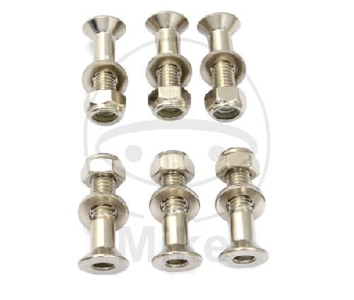 Kettenradschrauben Satz verzinkte Senkschrauben mit selbstsichernden Muttern. Im Satz enthalten sind:6x Schraube M8X1.25 35 mm 6x Mutter M86x Unterlegscheibe Güte: 10.8