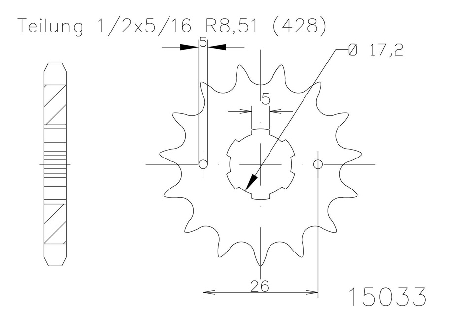 Ritzel 12 Zähne Stahl 428er Teilung (1/2x5/16)