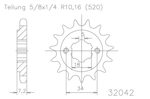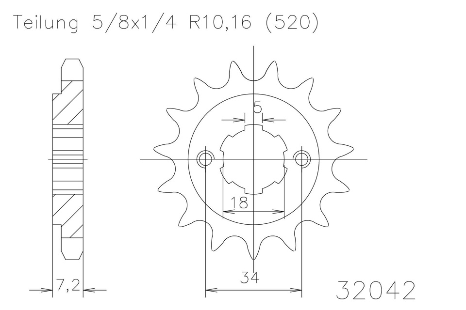 Ritzel 12 Zähne Stahl 520er Teilung (5/8x1/4)