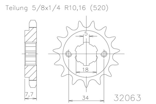Ritzel 12 Zähne Stahl 520er Teilung (5/8x1/4)