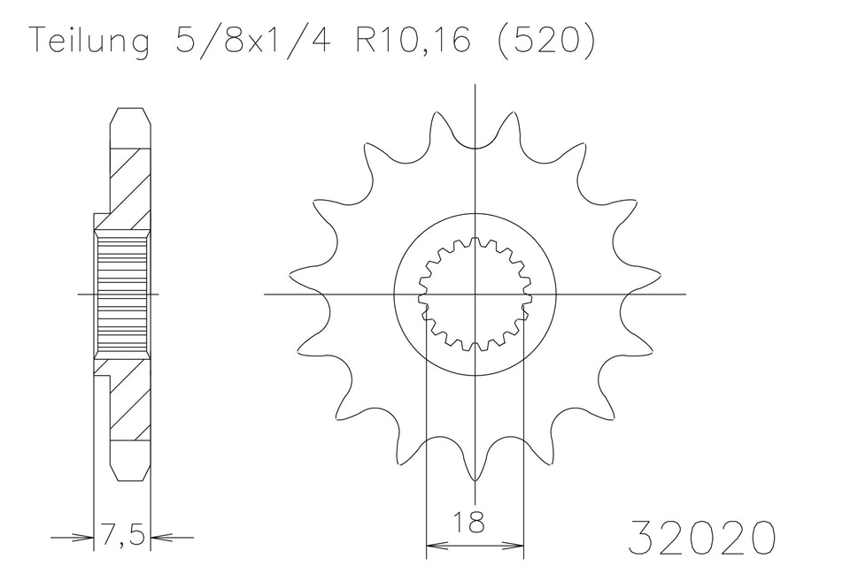 Ritzel 13 Zähne Stahl 520er Teilung (5/8x1/4)