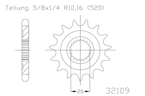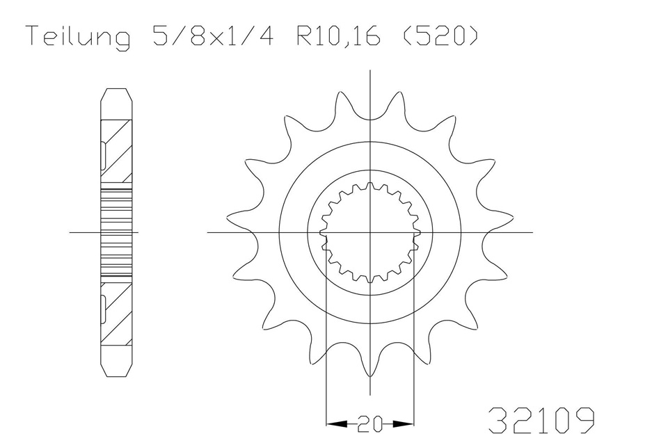 Ritzel 13 Zähne Stahl 520er Teilung (5/8x1/4)