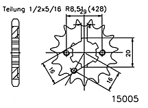 Ritzel 14 Zähne Stahl 428er Teilung (1/2x5/16)
