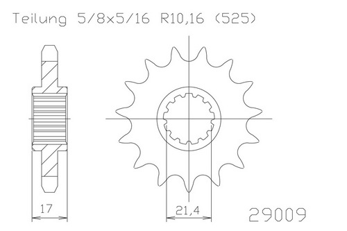 Ritzel 14 Zähne Stahl 525er Teilung (5/8x5/16)