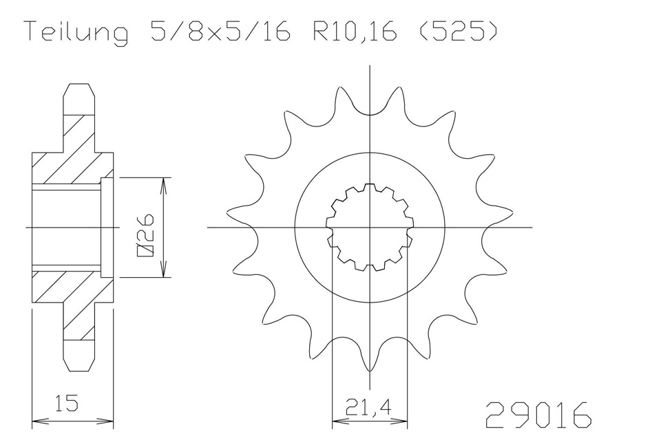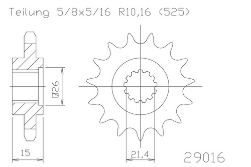 Ritzel 14 Zähne Stahl 525er Teilung (5/8x5/16)