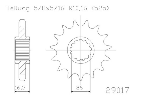 Ritzel 14 Zähne Stahl 525er Teilung (5/8x5/16)