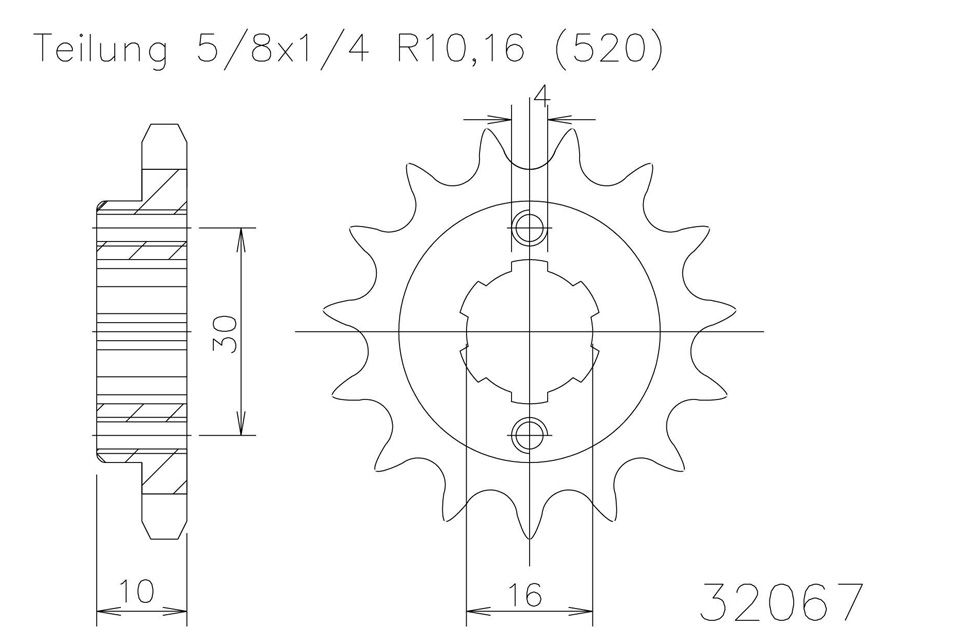 Ritzel 14 Zähne Stahl 520er Teilung (5/8x1/4)
