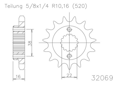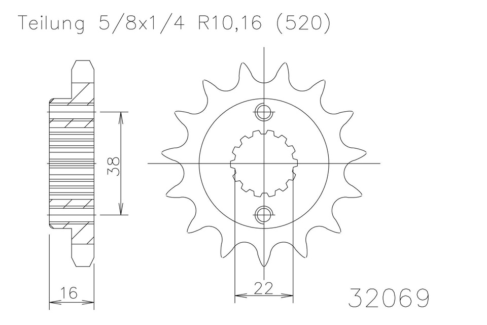 Ritzel, 14 Zähne Stahl 520er Teilung (5/8x1/4)