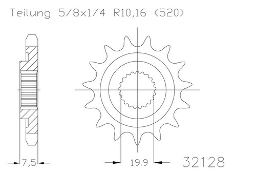 Ritzel 14 Zähne Stahl 520er Teilung (5/8x1/4)