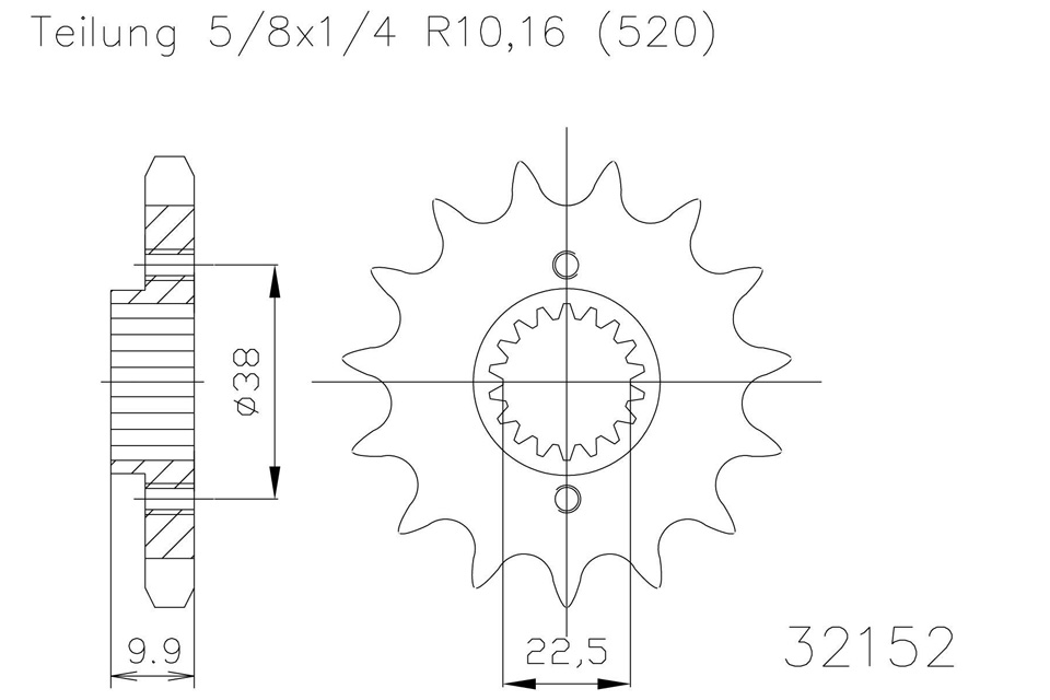Ritzel 14 Zähne Stahl 520er Teilung (5/8x1/4)
