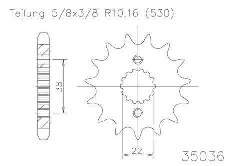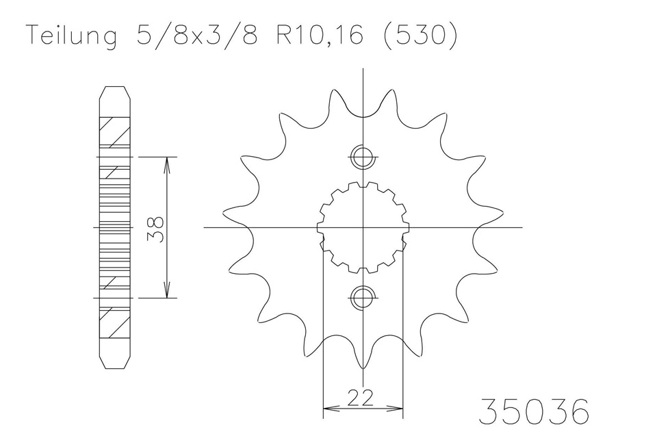 Wird erst ab einer Bestellmenge von 100 Stck. gefertigt ! Ritzel 14 Zähne Stahl 530er Teilung (5/8x3/8)