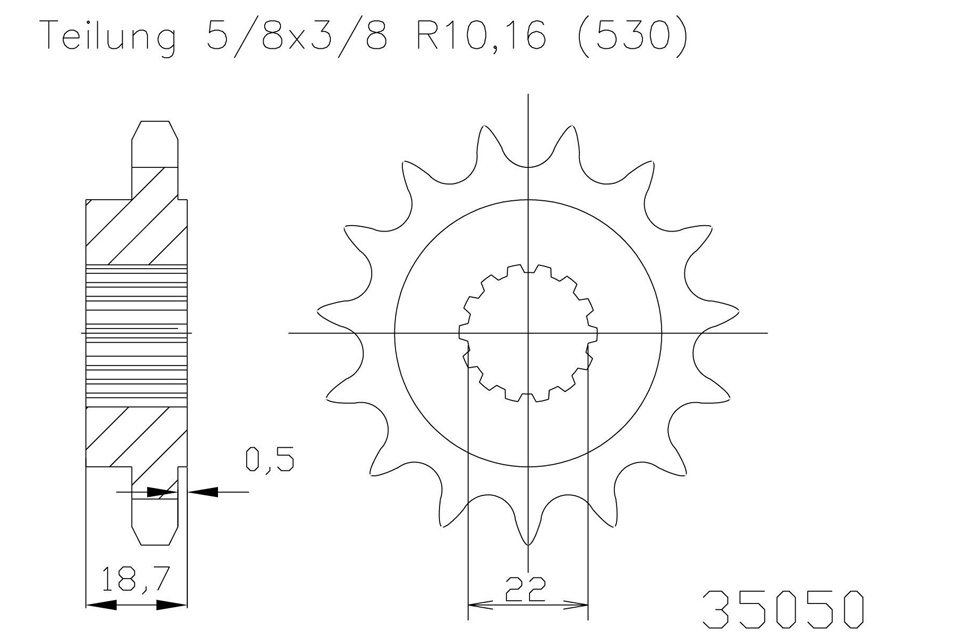 Ritzel 14 Zähne Stahl 530er Teilung (5/8x3/8)