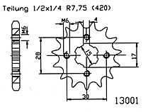 Ritzel 14 Zähne Stahl 420er Teilung (1/2x1/4)