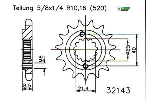 Ritzel 15 Zähne Stahl 520er Teilung (5/8x1/4)