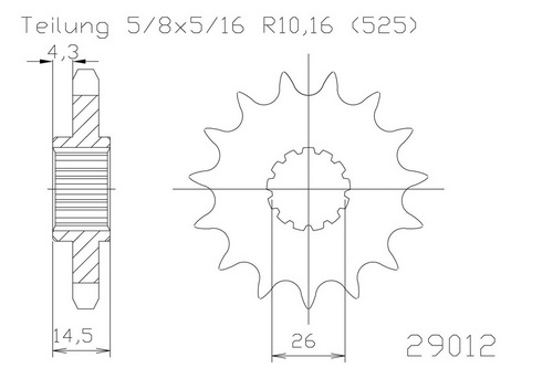 Ritzel 15 Zähne Stahl 525er Teilung (5/8x5/16)