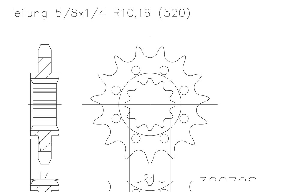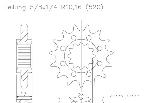 Ritzel 15 Zähne Stahl 520er Teilung (5/8x1/4)