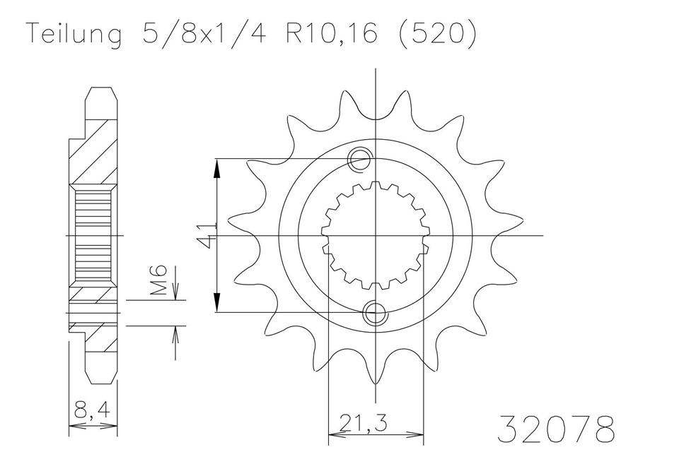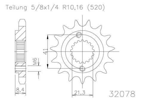 Ritzel 15 Zähne Stahl 520er Teilung (5/8x1/4)
