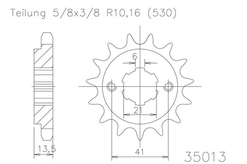 Ritzel 15 Zähne Stahl 530er Teilung (5/8x3/8)
