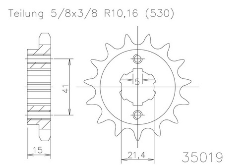 Ritzel 15 Zähne Stahl 530er Teilung (5/8x3/8)