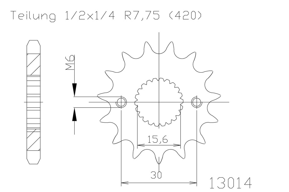 Ritzel 16 Zähne Stahl 520er Teilung (5/8x1/4)