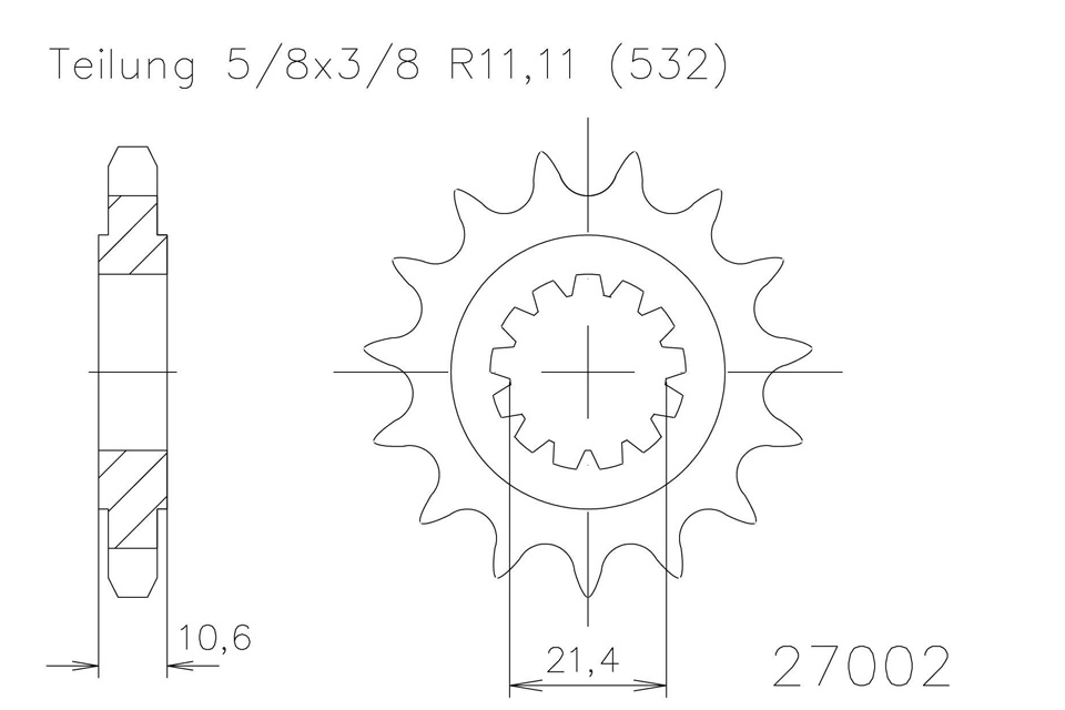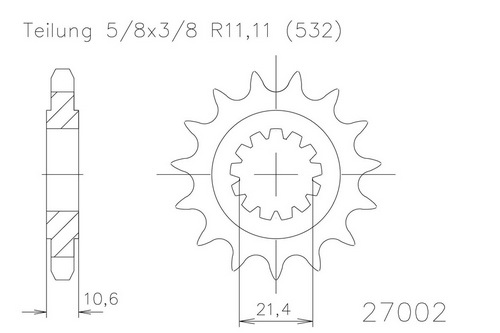 Ritzel 16 Zähne Stahl 532 Teilung (5/8x3/8)