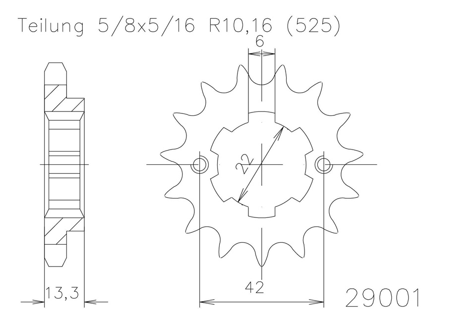 Ritzel 16 Zähne Stahl 525er Teilung (5/8x5/16)
