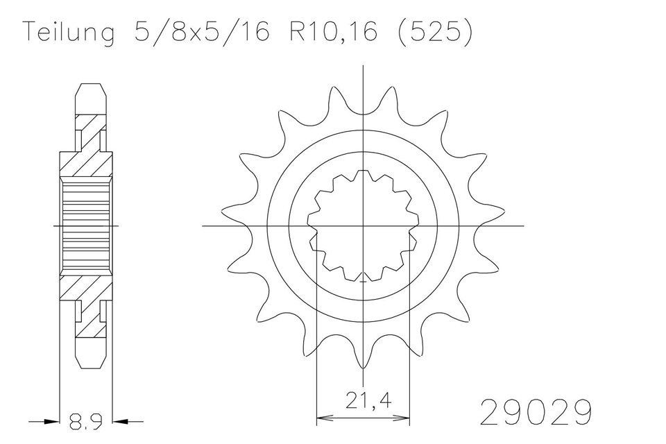 Ritzel 16 Zähne Stahl 525er Teilung (5/8x5/16)