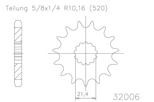 Ritzel 16 Zähne Stahl 520er Teilung (5/8x1/4)