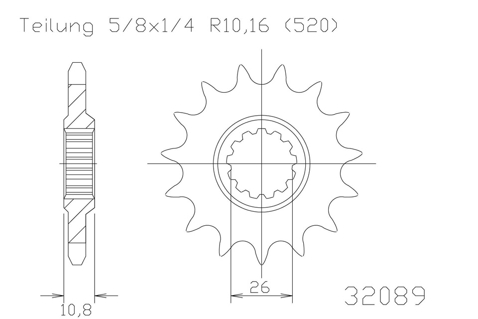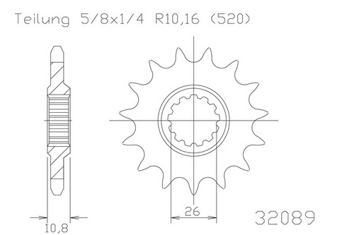 Kettenritzel, 16 Zähne