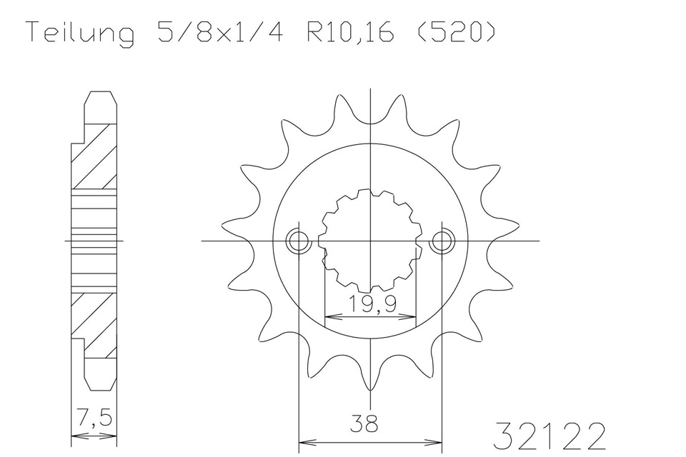 Ritzel 16 Zähne Stahl 520er Teilung (5/8x1/4)