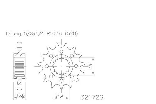 Ritzel 16 Zähne Stahl 520er Teilung (5/8x1/4)