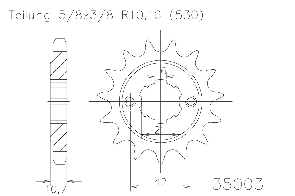 Ritzel 16 Zähne Stahl 530er Teilung (5/8x3/8)