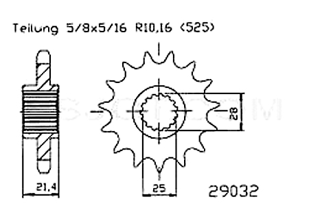 Ritzel 17 Zähne Stahl 525er Teilung (5/8x5/16)