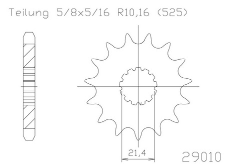 Ritzel 17 Zähne Stahl 525er Teilung (5/8x5/16), Sport
